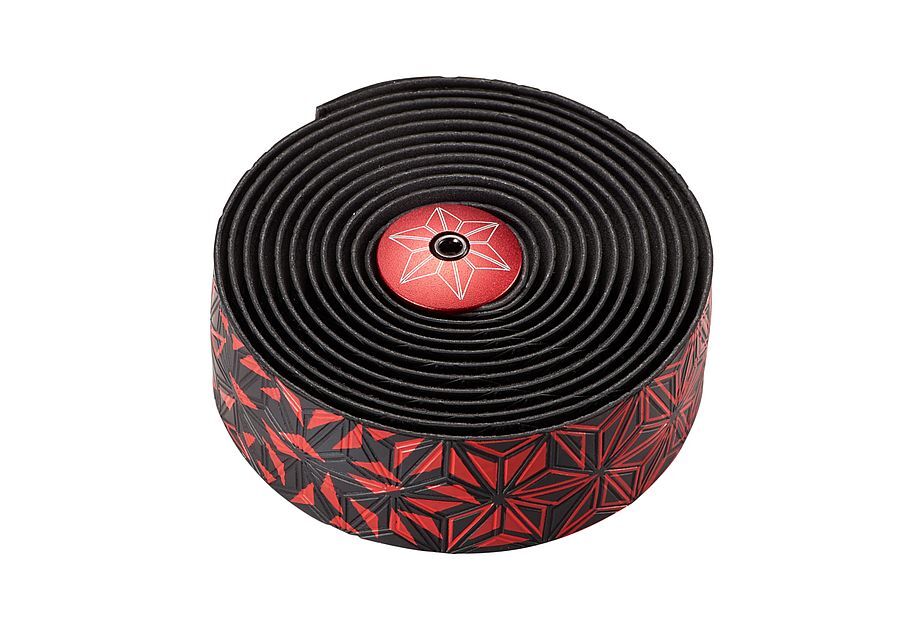 Star Plugz:Aluminium-Lenkerstopps, Schraube & Ausdehnung (3 mm), eloxiert oder pulverbeschichtet, lasergraviertes Logo, Finish Tape: High-End-Gummi-Tape (Multi-Use), Supacaz-Muster Frost Print.